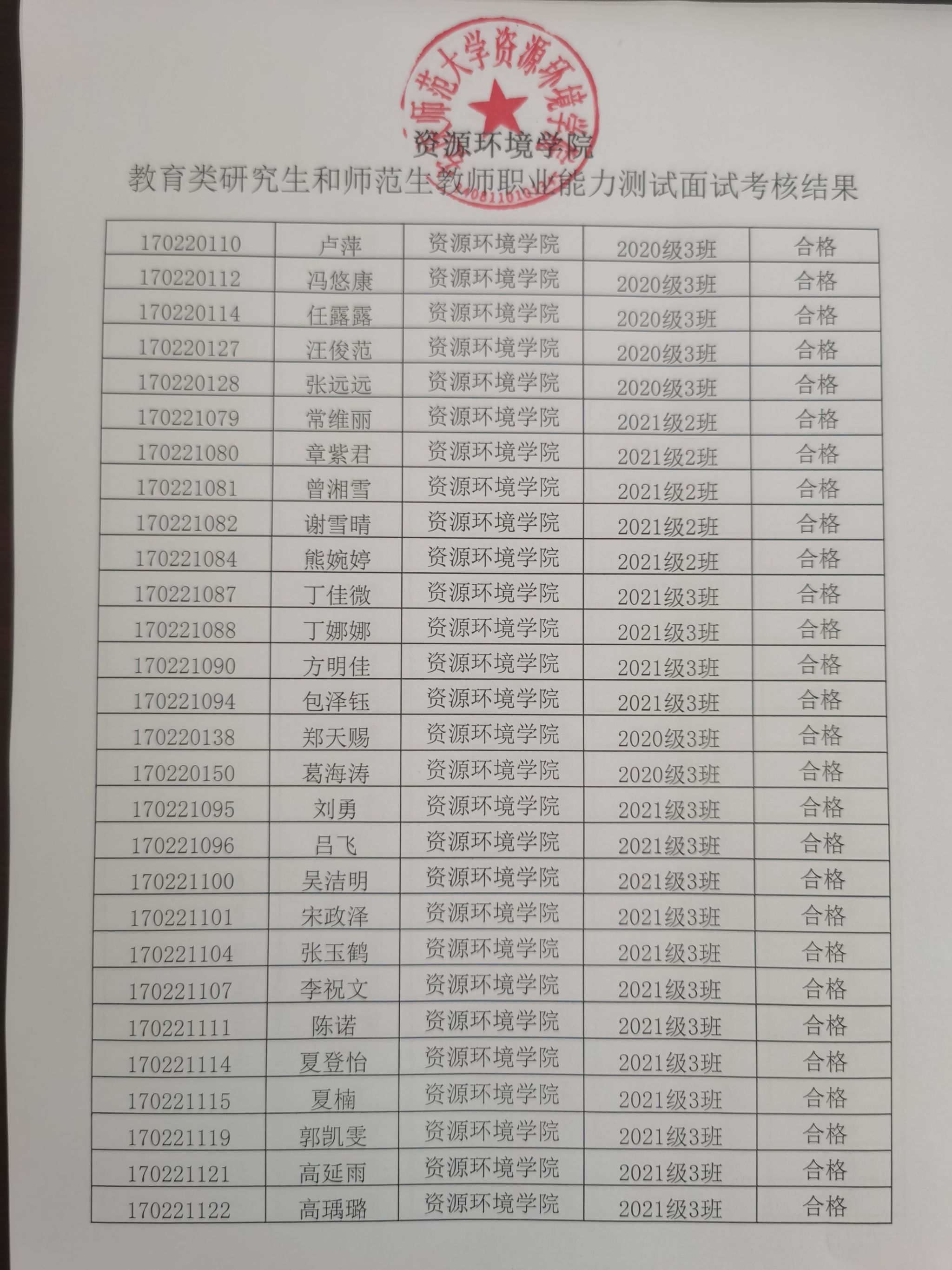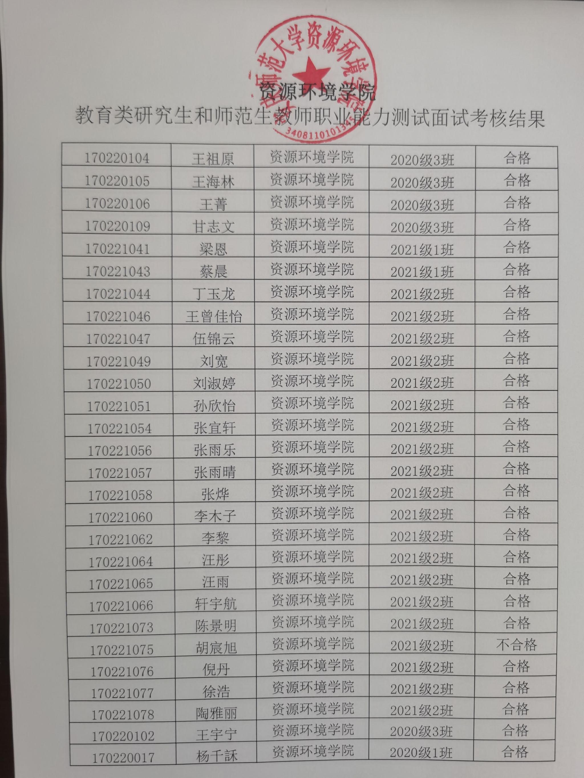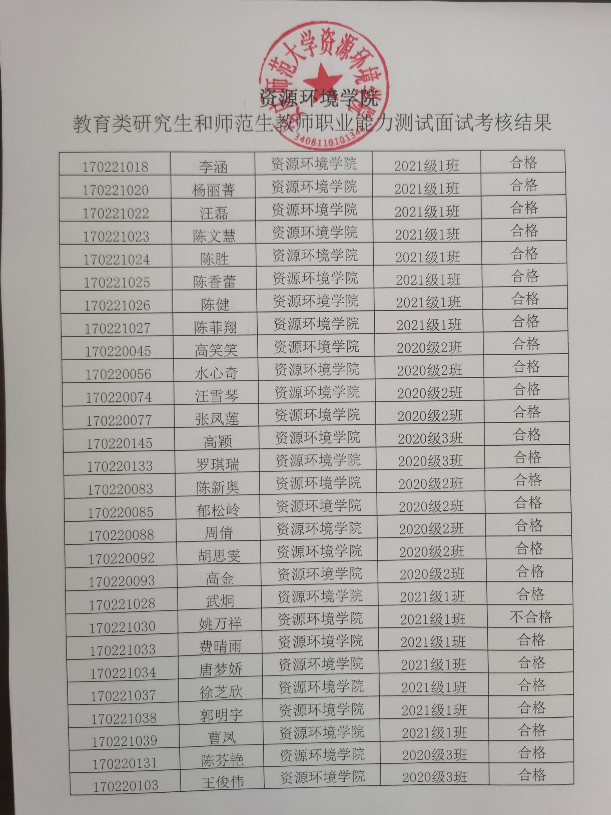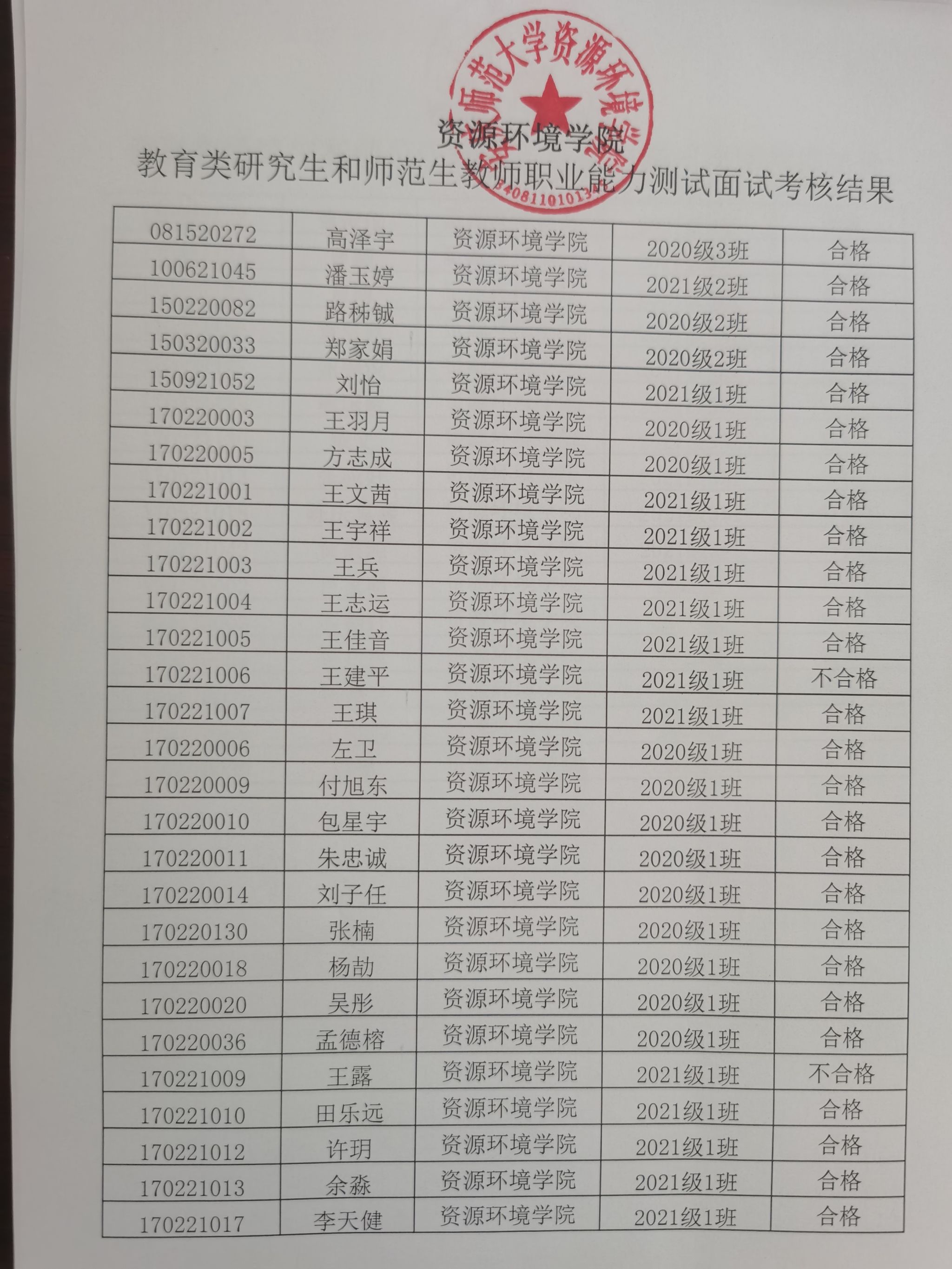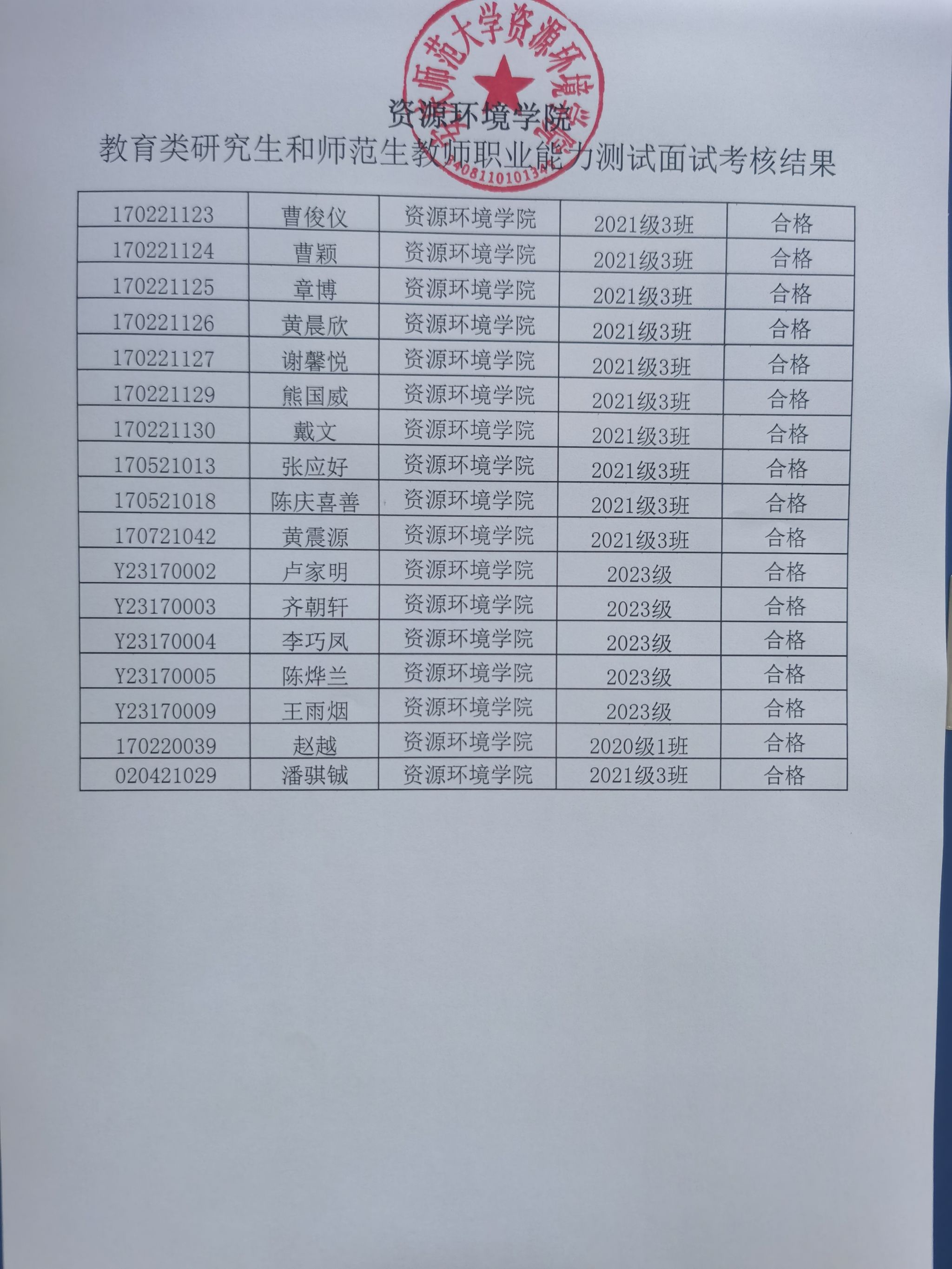 威廉希尔体育教育类研究生和师范生教师职业能力测试面试考核结果
