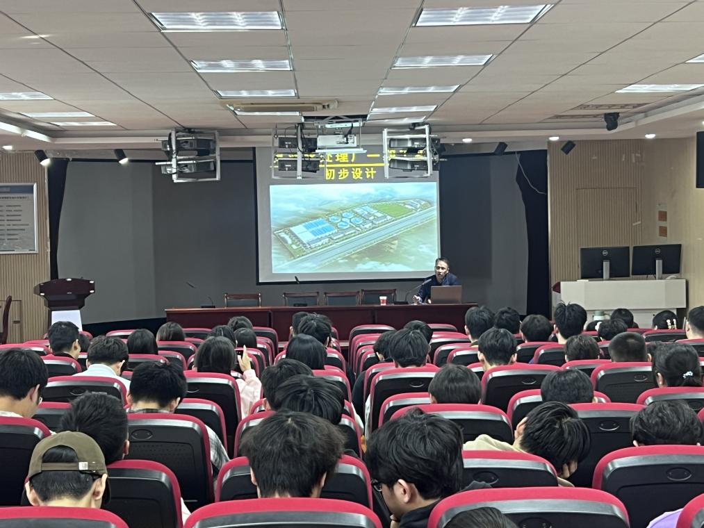 范总工主要以某污水处理厂一期工程设计为例讲解了污水处理工程的初步设计主要内容,对污水量预测、设计水质、污水处理工艺及工艺设计等方面做了详细介绍。此外,范总工还着重介绍了各污水处理车间中所含相应设备及构筑物的主要参数和处理效果,让同学们对污水处理工艺初步设计有了更加深刻的理解。