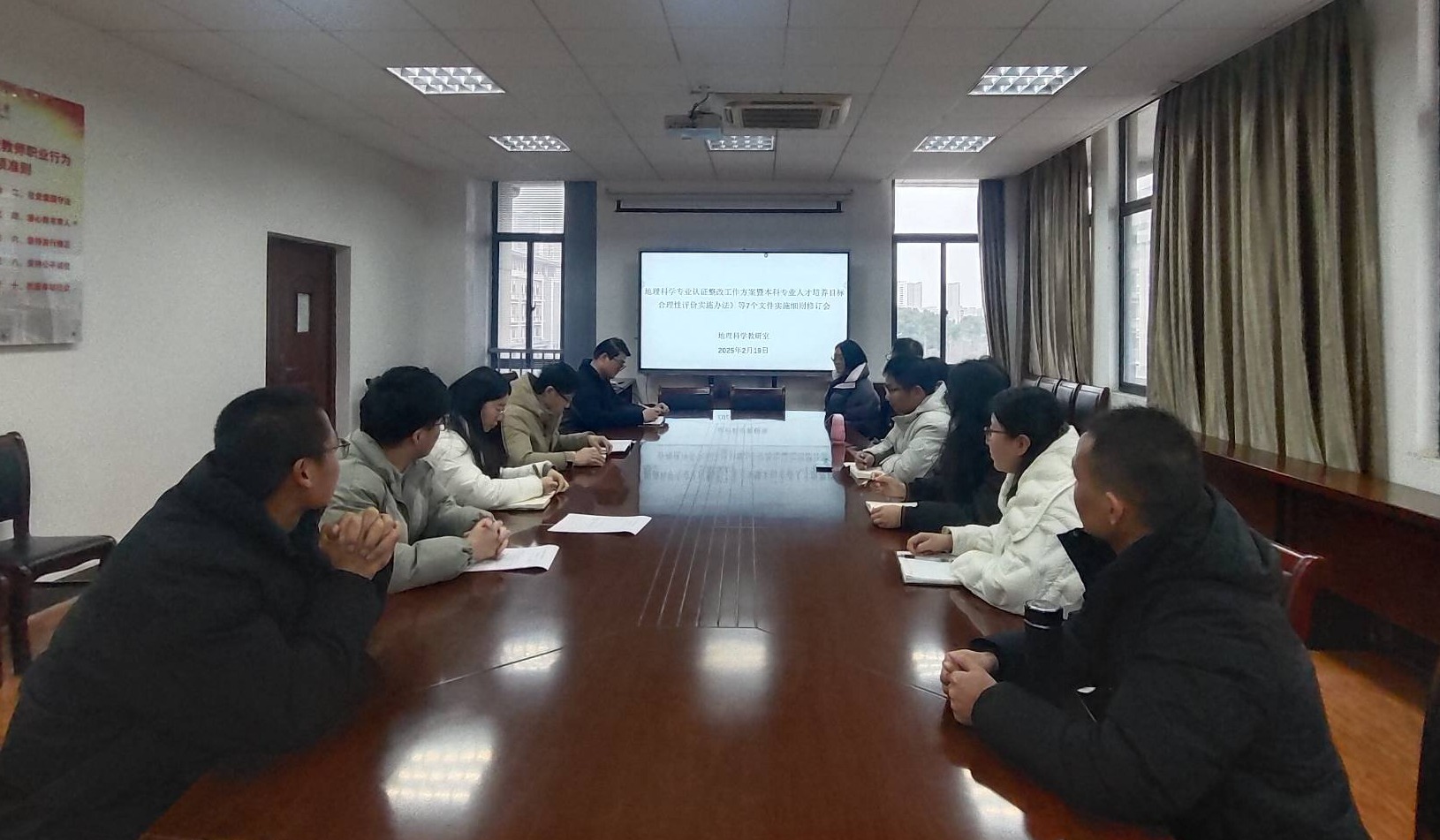 为进一步强化人才培养质量,落实立德树人根本任务,2月19日下午,地理科学教研室在F414会议室召开了地理科学专业认证整改工作方案暨《本科专业人才培养目标合理性评价实施办法》等7个文件实施细则修订会。会议由教研室主任顾洪亮主持,地理科学教研室骨干教师参与讨论。