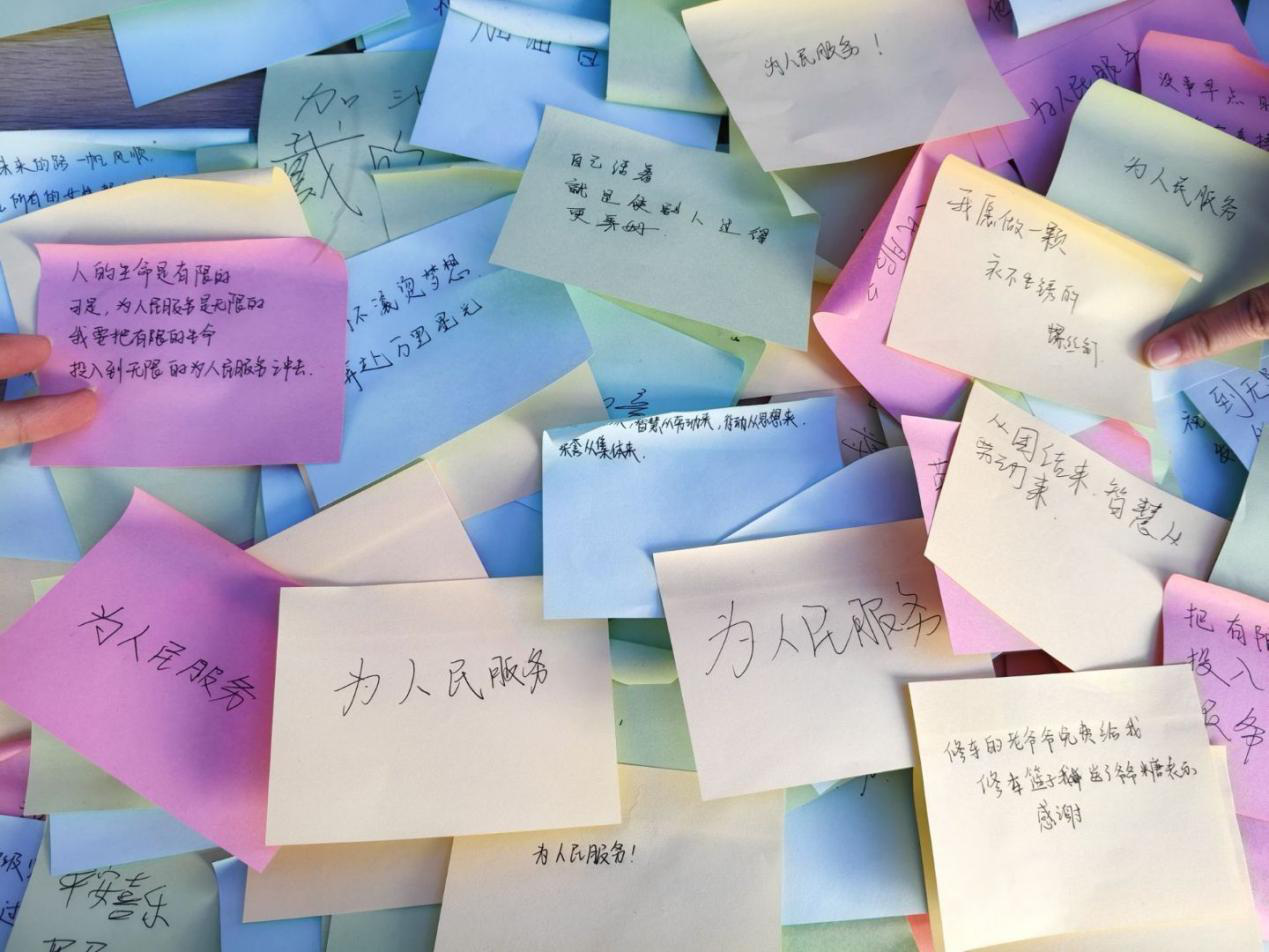 活动当天一早,红太阳志愿者服务团的部员便着手场地准备工作,从展棚搭建到道具摆放,从标语悬挂到区域划分,每个环节都凝聚着团队的用心。活动现场吸引众多师生驻足,他们纷纷询问活动背景,了解活动流程,现场参与氛围浓厚。本次活动包括两个环节,参与活动的同学可以选择写便签或者进行“雷锋”大富翁游戏。在便签书写环节,员工们可以写下他们对雷锋精神的感想,或是他们曾遇到的好人好事,亦或是他们了解到的雷锋名言。员工们纷纷写下自己心中的雷锋形象。有人说他是“人们的榜样”,有人说他是“人民的好战士”……一言一语无不体现同学们对雷锋同志的敬佩。也有同学写下雷锋的名言警句“我愿永远做一个螺丝钉”“人的生命是有限的,可是,为人民服务是无限的,我要把有限的生命,投入到无限的为人民服务之中去”……每句话都催人奋进,使人鼓舞。