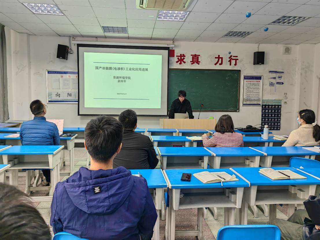 在交流环节,教师们高度评价技术的前瞻性:"双极膜电渗析展现的不仅是工艺革新,更是环保理念的升维——从污染治理转向资源再生,这与我党提出的'推动绿色发展,促进人与自然和谐共生'战略高度契合。"与会教师结合各自研究领域展开热议,提出双极膜技术实现工业化的关键点,针对电渗析技术使用过程中污染问题的解决给予提议并探讨了双极膜技术在碳捕集封存体系中的衔接可能,现场学术氛围热烈。(撰稿人:余帅军 摄影:汪宜 审核人:李法松)