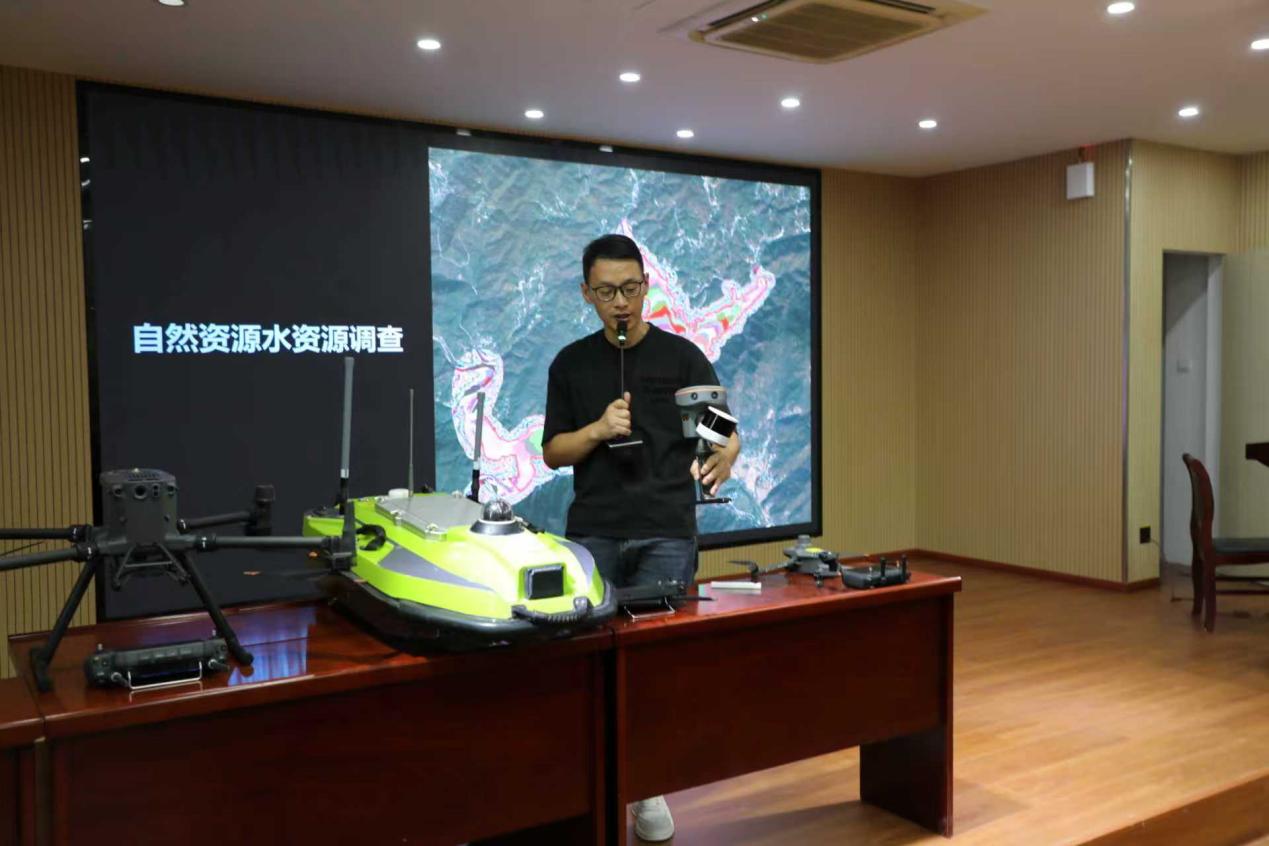 工程师石磊分别就无人机、手持激光扫描仪、无人船、激光扫描传感器等现代测绘装备的工作原理和实际操作进行了系统介绍,现场演示部分设备功能,引来员工浓厚兴趣。