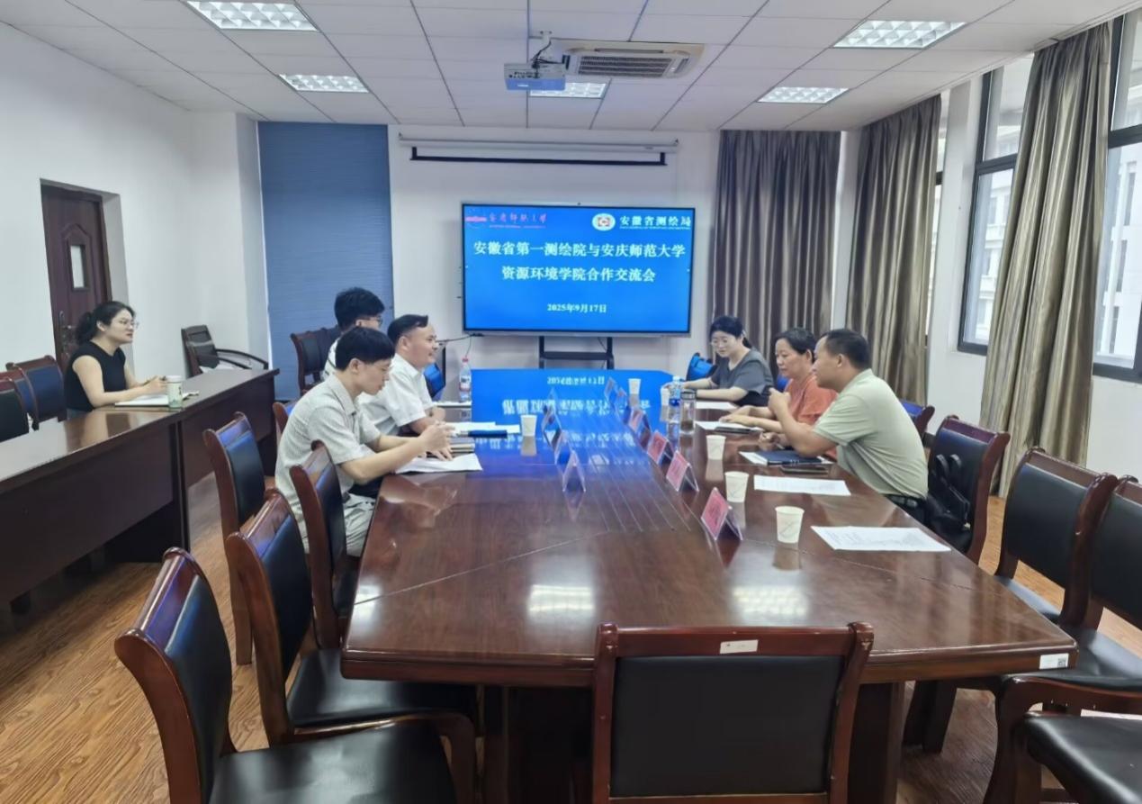 2025年9月17日,省第一测绘院副经理潘宏带队,与安庆市自然资源规划局一行来公司威廉希尔体育开展自然资源智慧调查技术和科普宣讲演练活动。公司党委书记夏斐以及地理教研室教师代表一起参加了交流座谈。