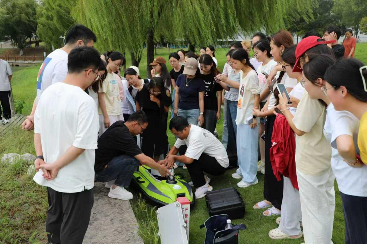 这一创新性的实践形式极大地激发了同学们的参与热情,同学们踊跃上前,将专家们“团团围住”,争先恐后地就设备原理、操作细节和应用场景提问交流,纷纷要求亲自上手操控无人船遥控器,期待能将刚才所学的理论方法付诸实践。2023级地理科学专业员工卞晓云在成功完成一段航线任务后兴奋地表示:“以前只在课本和视频里看过无人船测绘,今天不仅能亲手触摸、亲自操作,还能实时看到它传回的水下地形数据,这种感觉太震撼了!这让我对自己所学的专业前景充满了信心和向往。”