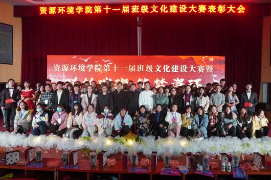 12月14日晚,威廉希尔体育第十一届班级文化建设大赛表彰大会暨“群新璀璨 筑梦资环”主题晚会在图书馆东厅举行。晚会现场座无虚席,威廉希尔体育副经理金宝石、党委副书记刘燕杰以及部分教师代表同400余名员工共同观看了晚会。