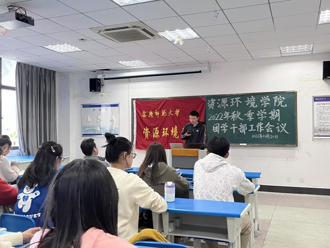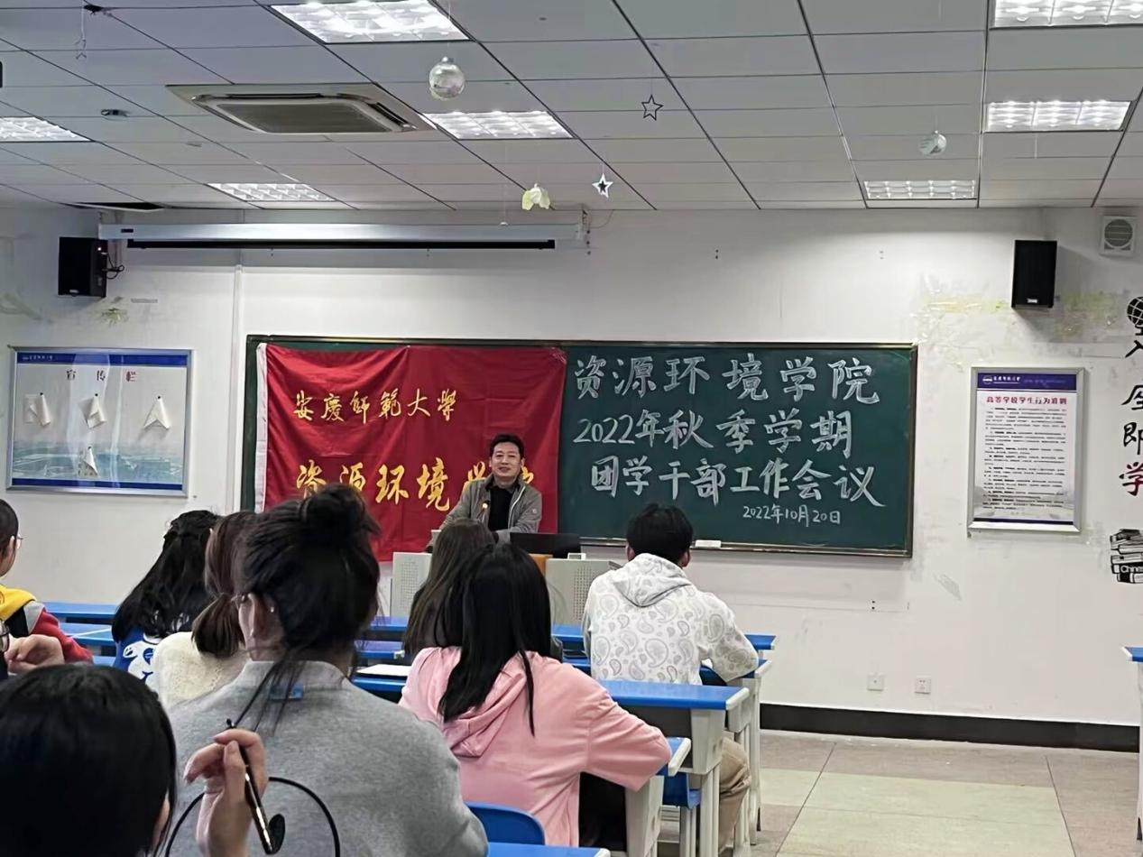 黄建平对本学期团学工作做出了相关布置,并就团学干部应具备的核心素养提出了相关要求。他强调,团学干部应做到:一是要充满情怀,坚持使命担当。要用党的创新理论武装头脑,弘扬社会主义核心价值观,做一个具有政治觉悟和优良道德品质的员工干部,履行引领青年、聚集青年、服务青年的责任担当。二是加强学习,提高能力。要聚集学习主业,提升学习效果,做员工的好榜样。要积极参加社会实践,既要读有字之书,也要多读无字之书。在学习和实践中不断提高组织管理能力、人际沟通能力、群众工作能力、社会调查能力、文字表达能力,做一个又红又专的团学干部。三是要坚持团结协作,加强纪律规矩意识。在工作中讲大局、讲原则、讲格局、讲规矩,讲奉献,努力将资源环境员工组织建设成为学习型、服务型、创新型的优秀团学组织。