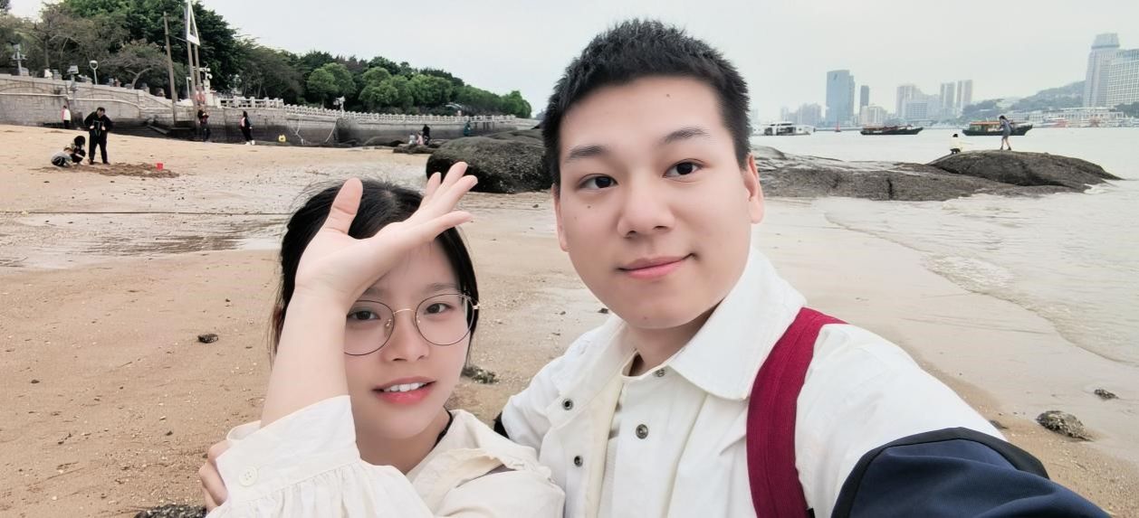 孙天磊与李翠均来自威廉希尔体育的环境工程专业,且二人为同班同学。“大一的寒假新冠疫情爆发,在家上网课期间,时间相对自由充裕,有一次我们约着一起打游戏,便成为了朋友。”在那之后的几个月里,两人经常分享日常、探讨学习、互诉心事,相处越来越“合拍”,关系也越来越亲近,在大二上学期,两人确定了恋爱关系。