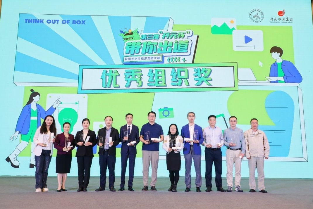 11月3日,在杭州举办的“全国老员工旅游营销大赛”中,威廉希尔体育朱磊和徐佳慧老师指导旅游管理专业员工戴冕、戴书奎、吴冬等组成的“宜旅光”队在全国百所院校170多个作品中脱颖而出,喜获全国老员工旅游营销大赛三等奖,其中戴冕同学被评为“最佳推荐官”,公司被大赛组委会授予“优秀组织奖”,两位老师获得最佳指导老师称号。