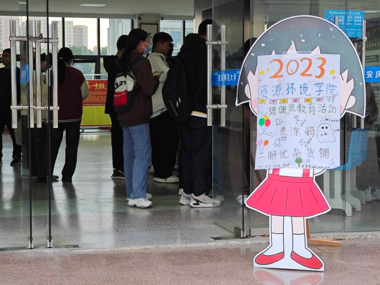 学习压力、人际关系、就业选择……每位同学都面临着不同的情绪难题。在“心灵涂鸦”环节,工作人员事先准备好了一些绘有空瓶子和空垃圾箱图画的纸张。每个参与者可在象征快乐的空瓶子瓶里绘上自己的愉悦心事;也可以在作为负面情绪回收站的的空垃圾箱里填入悲伤情绪。“把快乐装进收集瓶,把悲伤扔进垃圾箱,我身上的负担又轻了些。”来自地理科学专业2022级(2)班的许滢淇同学表示,这种运用艺术表达自己内心世界的方式,不仅给予了大家情绪宣泄的出口,也能使自己更好地认识自己的心理状态,避免潜在的心理问题。