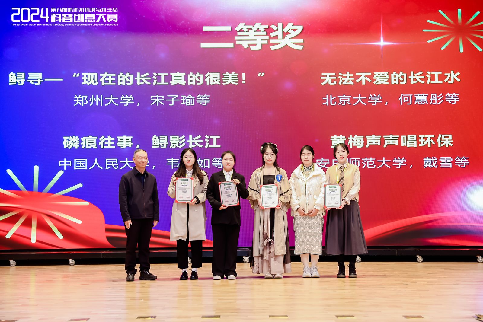 近日,第六届城市水环境与水生态科普创意大赛在北京落下帷幕。历时9个月,四十余所高校近三百支队伍经过专家组初评、复评层层筛选,决出16支队伍前往北京参加现场总决赛。经过激烈角逐,公司陈书琴教授与黄梅剧艺术公司江爱华教授共同指导的员工作品《黄梅声声唱环保》(戴雪、杨若梅、杨梦怡、牧伟、周地、陈雅琳、张阳阳),荣获第三名二等奖,与北京大学、中国人民大学等队伍一同登台领奖。