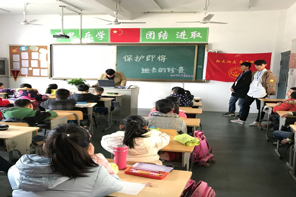 本次活动共有四个环节。第一个环节为发现我们身边熟悉的动物。主讲人请同学们上台来比一比自己认识动物的多少,并播放了一段可爱的动物视频。第二个环节是保护野生动物。主讲人首先举例变色龙通过变色来保护自己,然后提问同学其他动物的自我保护方法,和我们又该如何去保护它们。再播放一段公益小广告,呼吁大家一起保护野生动物。第三个环节是介绍濒危的动物。主讲人用PPT向同学们介绍了我国的珍稀动物,同学们也在志愿者准备的保护野生动物的宣传板上签下自己的名字。第四个环节是我们的游戏环节。主讲人请同学上台来模仿各种动物,台下的同学通过模仿的声音和动作来猜是什么动物。最后,我们在同学们各种有趣的模仿中结束了本次活动。