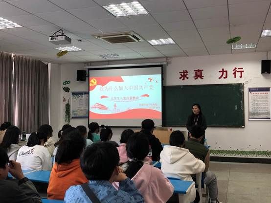 此次班会的主题是入党启蒙教育,杨煜老师从“历史和人民选择了中国共产党”、“端正入党动机”、“想要入党我应该怎么做”这三个方面对老员工入党问题进行了详细的阐述。她强调:在旧中国半殖民地半封建的社会性质下,只有中国共产党才能救中国,也只有中国共产党才能带领中华民族实现伟大复兴!党员的称号不是一种光环,而是一种为人民服务的责任感和使命感,在党和国家需要的时候,党员们挺身而出,发挥好先锋模范的带头作用,这是担当和奉献精神的最好体现。敢于担当、无私奉献,这是共产党员的义务,也是我们国家不断发展和进步的动力。老员工入党,需要同学们本着为大家服务的精神去积极参与班级活动,争取为班级建设贡献出一份力量;要做到品学兼优,从思想上到行动上带动班级更多的同学积极向上。想要入党就得接受党的考验,只有意志坚定、不畏困难、勇往直前的同学,才能真正成为一名合格的共产党员。