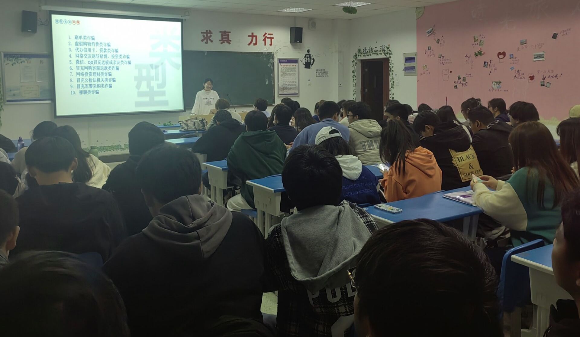 为了有效提高员工的反诈骗意识,守护同学们的财产安全,营造全民反诈骗的浓厚氛围。于4月25日晚,2022级环境科学与工程类1班、2班在F207由2班班长江洋洋同学召开学习防诈骗知识宣讲活动。